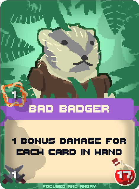 The badger will gain 1 attack for every card you have in your hand. So if you have 3 cards in your hand when it attacks, it will deal +3 damage!